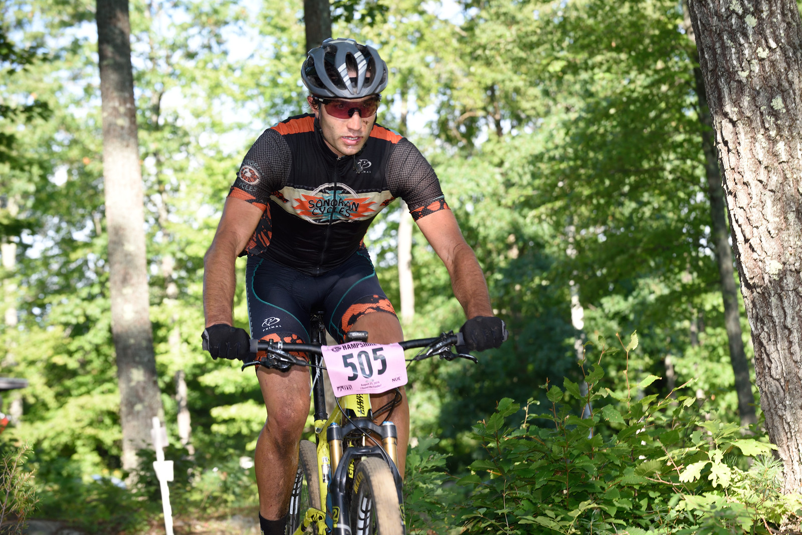 Ten minutes later, 55-year-old Mark Vojtko, Claremont Cycle Depot, finished second at 6:37:42. “My race went pretty good. I started off slow and found a good rhythm. Eat-drink-pedal-don’t burn any matches-save the bike-repeat. I ride my race, I pass people, and people pass me. The tea leaves fall where they’re going to fall in the end. I’ve had the great fortune of three podium finishes out of five consecutive NH-100 completions-not bad for someone who started racing mountain bikes at age 47. All races hurt, all races teach you to dig deep, and they’re all rewarding.