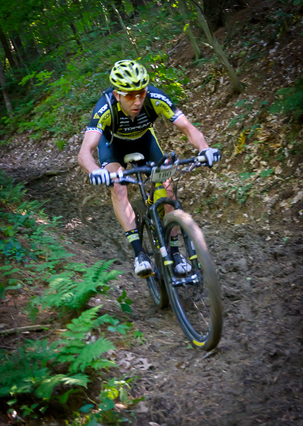 After placing second at Big Frog 65 a few weeks ago, Andrew Dillman, Think Green, earned a narrow win and a course record with a time of 4:27:04. The previous course record was set in 2012 by OMBC Ohio Series Champion, Steve Twinning at 4:29:00.