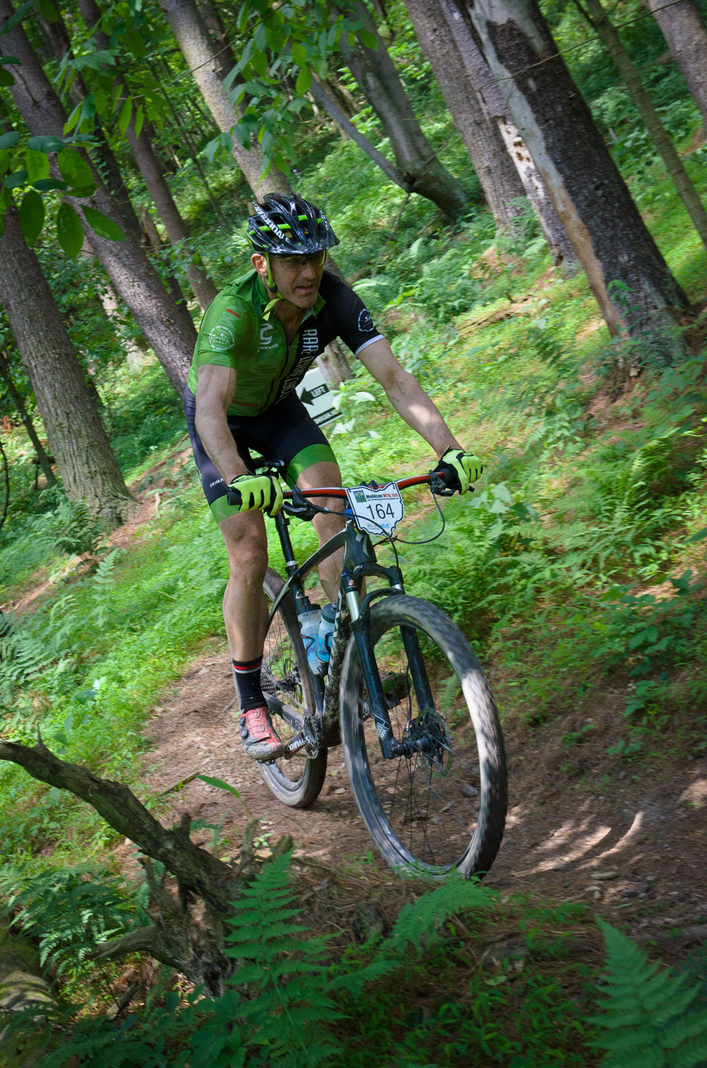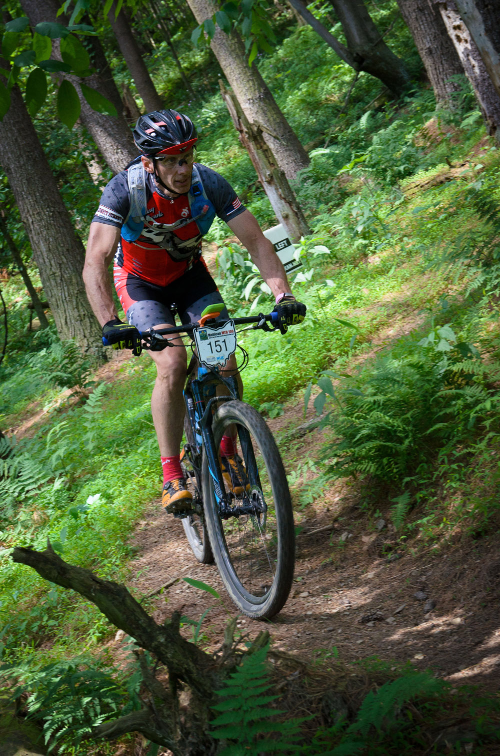 By the covered bridge things were fairly well sorted out pack-wise. The Mohican Forest trail was just a blast to ride, non-technical, fast and flowy. I did fall victim to the water bars (on the horse trail) however, being taken down by the last one into a muddy pit but that was the extent of water and hazard. For the most part, the course was otherwise point and shoot.