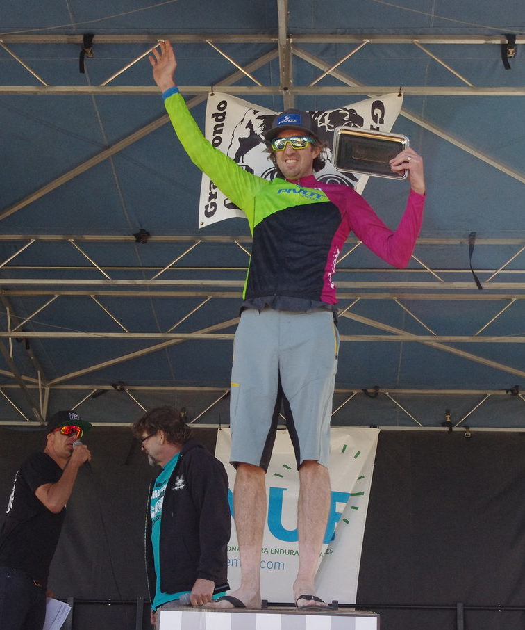 “I spent an amazing day at Big Bear racing on fantastically varied trails that tested me in new and ever changing ways. I remember a crazy downhill on off-camber, thick coarse sand, where the only sign of the trail ahead was a transient rut carved by the previous rider, a sweet river trail with blind sandy and rocky corners flanked by steep drop offs, a fairly monstrous (HORS) climb that made me really wish for my hardtail, awesome rolling, flowy singletrack along a ridgeline with incredible views of the San Bernadino Mountains taking me up, around, and over cool sculpted granite towers, then a sweet bermed corner forested descent on relative hard pack leading to a nice late-in-the-game, pin-it-to-win-it singletrack climb up to the final fireroad downhill where the probability of a car appearing around each blind loose corner seemed to increase the closer I came to town (but where I got my only top 10 Strava segment on the day!)… All of that packed into one fantastic sub-six hour experience at a truly incredible place on the planet.