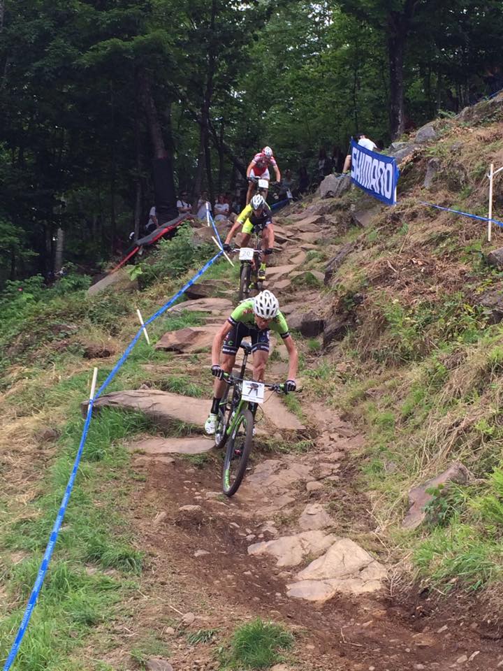 After cresting the early climbs together the first attacks came from Bradyn Lange (Scott Sports), who started the day in third place and l’Esperance who opened up a gap to Paton. The race was on as the leaders set a grueling pace up the singletrack and rocks of the Getaway ascent.