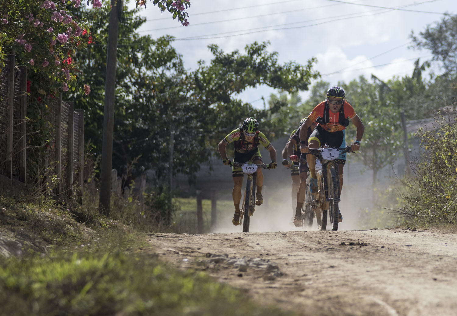 One big climb down, we reached the bottom of the final big ascent of the race. A beast of a mountain that starts hurting before you even start. It’s so steep you can see the final climb for a half kilometer before actually getting there. The climb itself is so steep they recently had to pour two parallel ribbons of concrete running from top to bottom to help the 4×4 trucks get up. Pick one ribbon at the bottom and stay on it if you hope to have any chance of riding your way to the top. You need every bit of your 50 tooth eagle rear cassette to get up this thing.