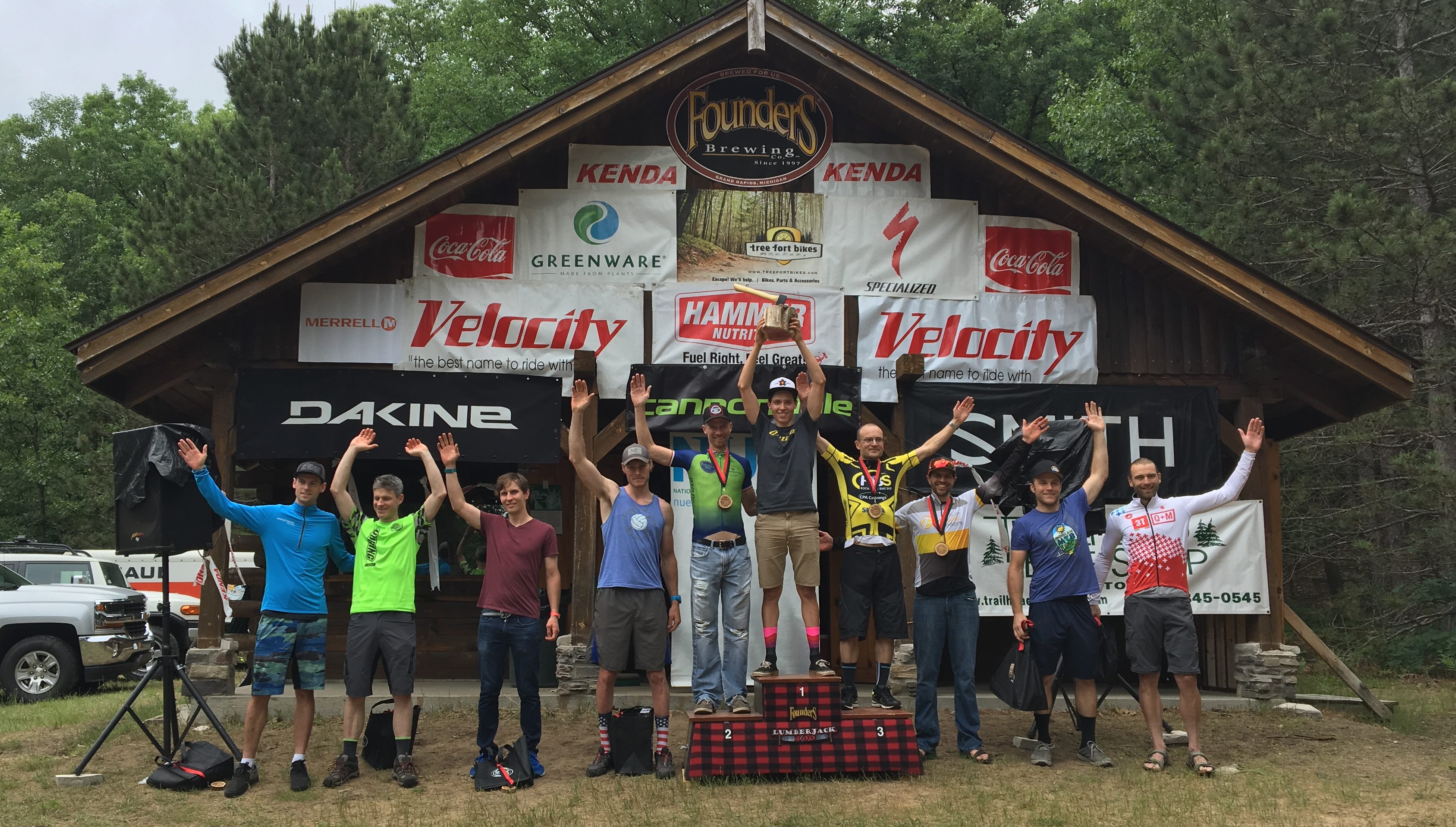 The 14th annual Founders Brewing Lumberjack 100 is Michigan’s original one hundred mile mountain bike race. Taking place in Wellston, Michigan, the race course is located within the Manistee National forest and is ninety percent singletrack. Each lap consist of thirty-three miles of sandy loose soil, fast flowing hills, and three thousand feet of climbing. Racers complete three laps and support crews set up along the finish providing “pit style” aid to racers.