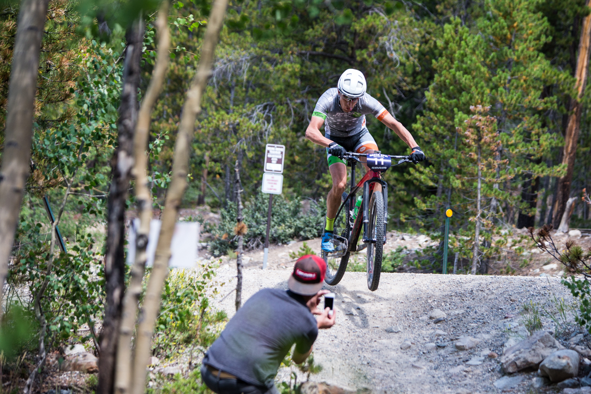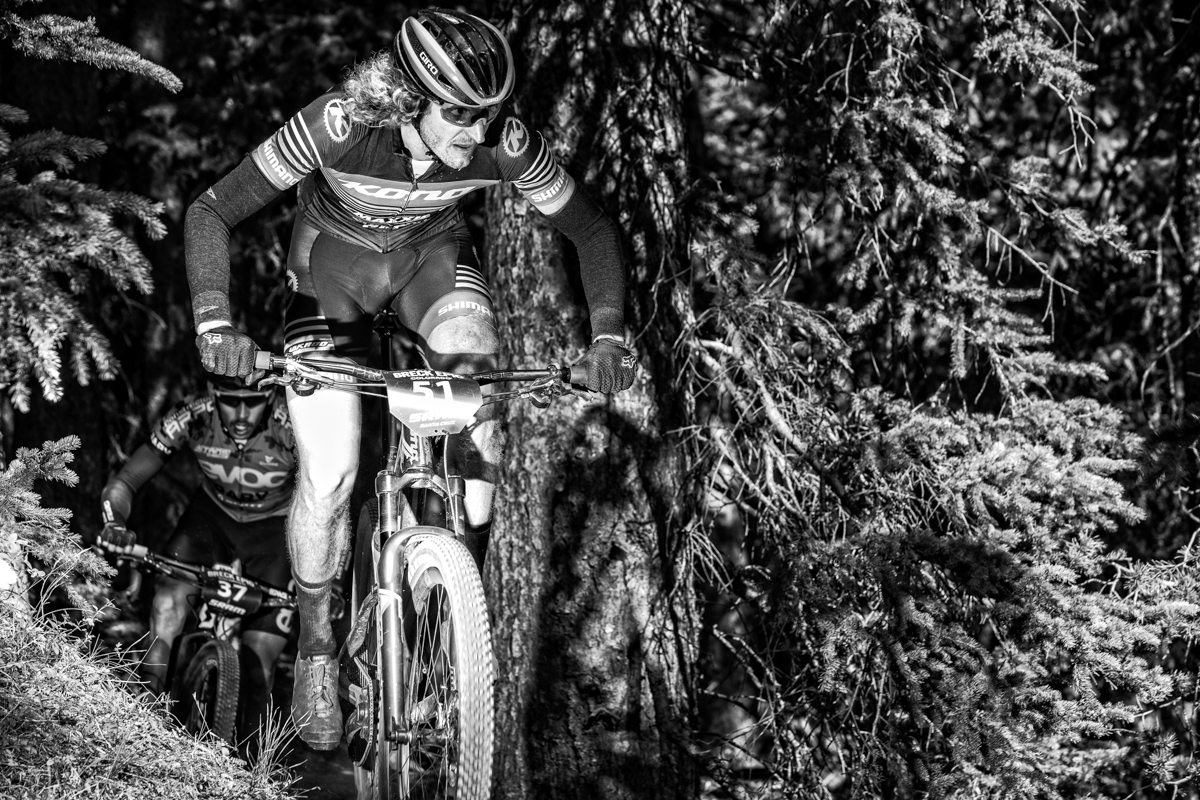Around the halfway point, Swenson attacked, pushing the pace into the long enduro segment on the Corvair trail. A move that worked for him in 2016, Swenson popped more riders from the lead group but couldn’t shake Wells. By the time he entered the aspen-rooted maze known as John’s Trail, Swenson and Wells established a gap of a few seconds over the rest of the lead group.