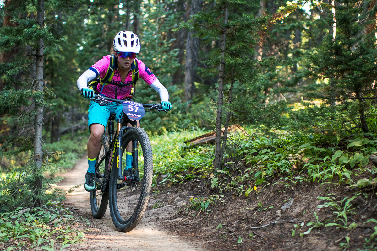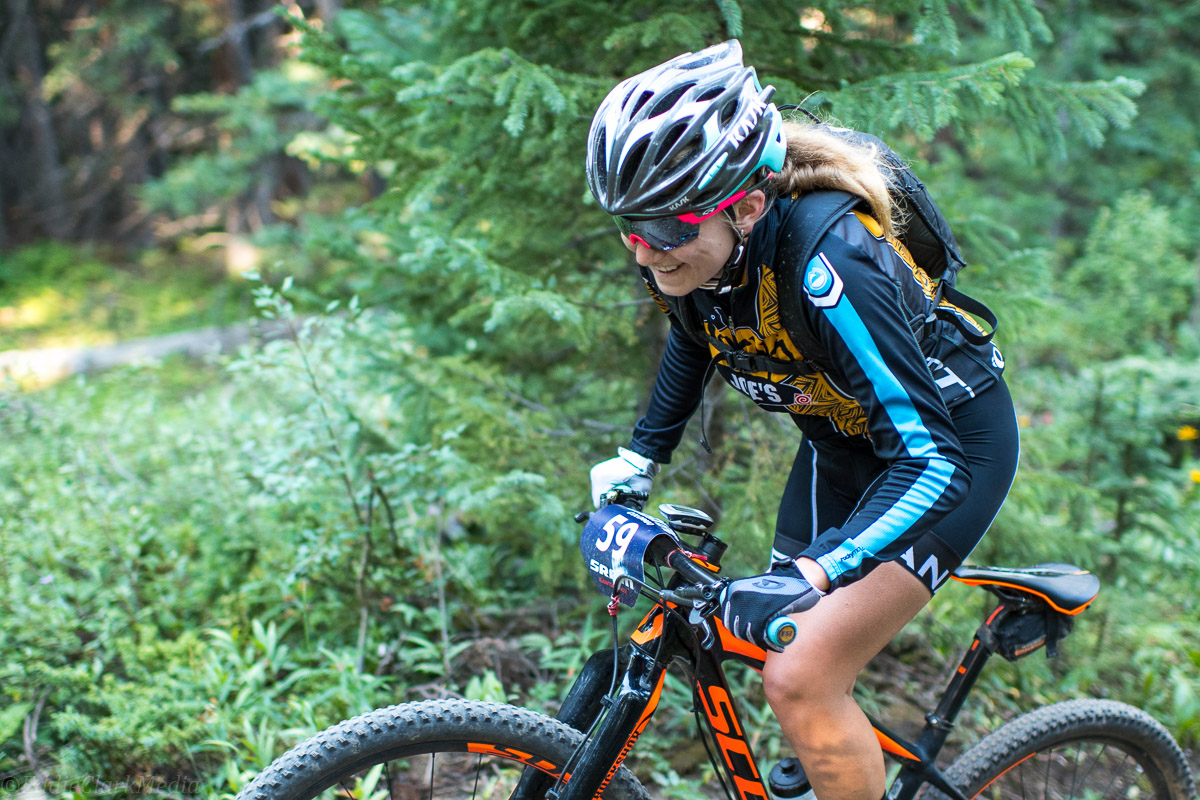A battle for second was brewing behind the lone leader however, Firecracker 50 winner Marlee Dixon (Pivot/DNA Cycling) was riding just in front of Caedran Harvey as both riders climbed past Deer Valley and Shadow Lake over 50 miles into the race.